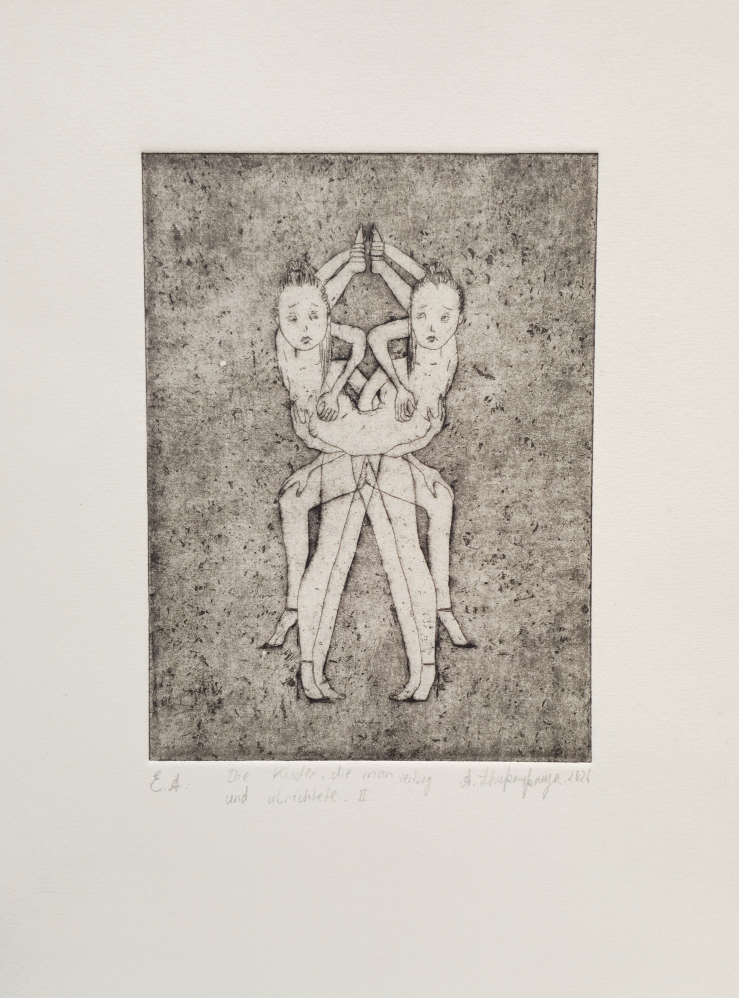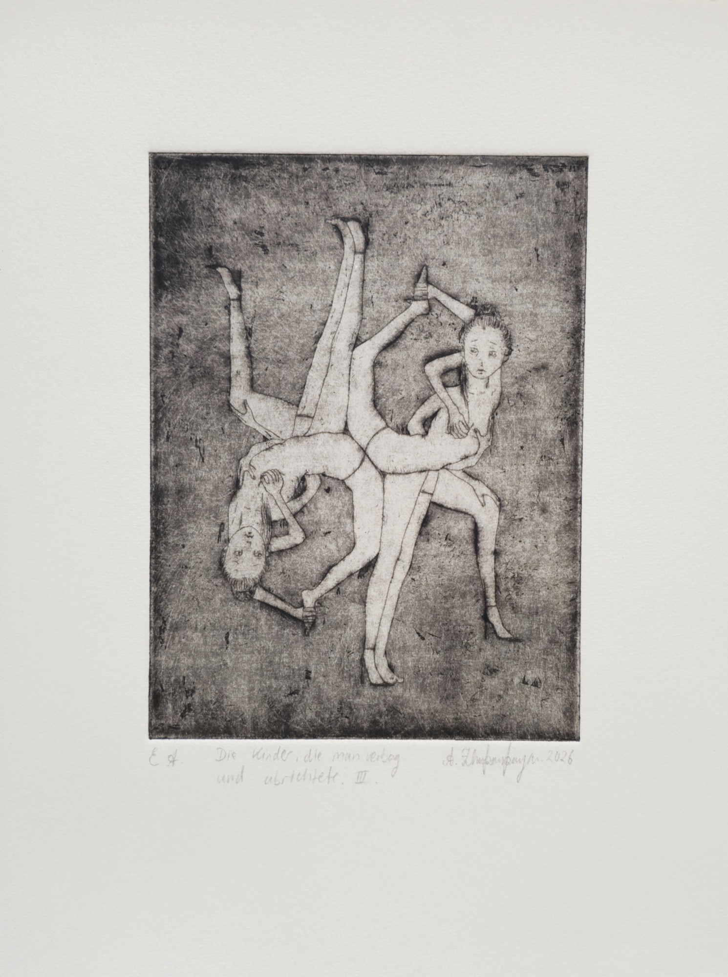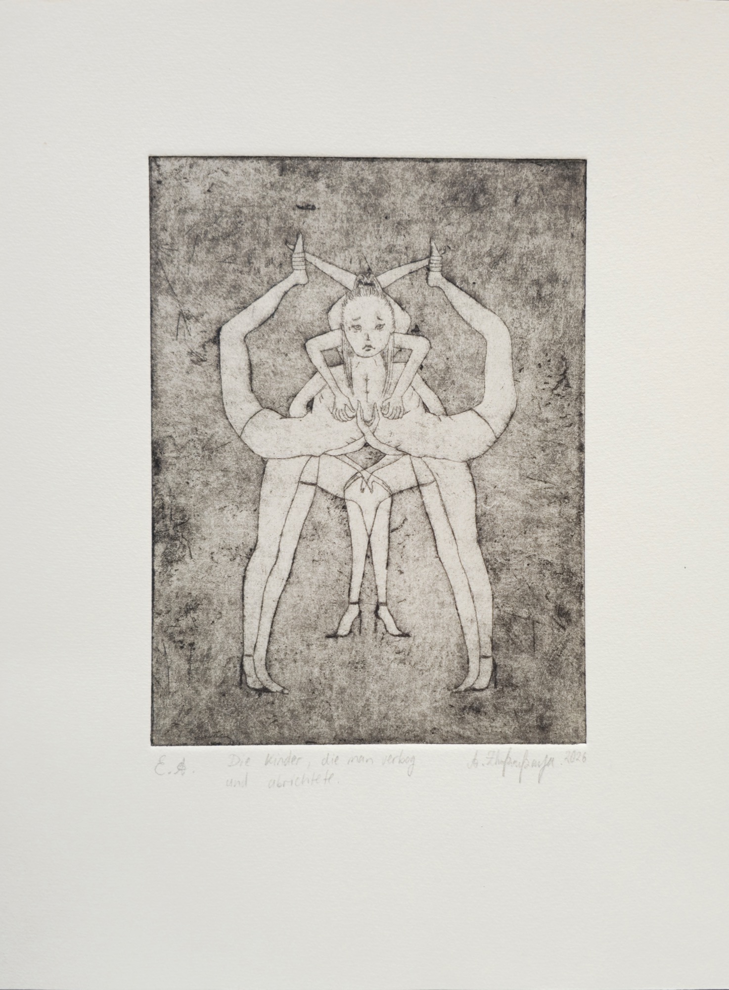 Die Werkreihen „Sin of Children“ sowie „Die Kinder, die man verbog und abrichtete“ zeigen die Kindheit so wie sie nicht gerne gesehen wird, aber eine Reale Welt von Kindern darstellen kann. In dieser Welt sind die Kinder einer düsteren Wirklichkeit ausgesetzt, der sie ausgeliefert sind. Die Arbeiten zeigen Figuren, die verdreht, zerbrechlich oder fremd wirken, als wären sie in eine Gestalt gezwungen worden, die nie die ihre war. Und doch wird diese Deformation als ihre eigene Schuld gelesen. Die „Sünde“ scheint beim Kind zu liegen, bei einem Kind, das seine Kindheit nicht gelebt hat.
