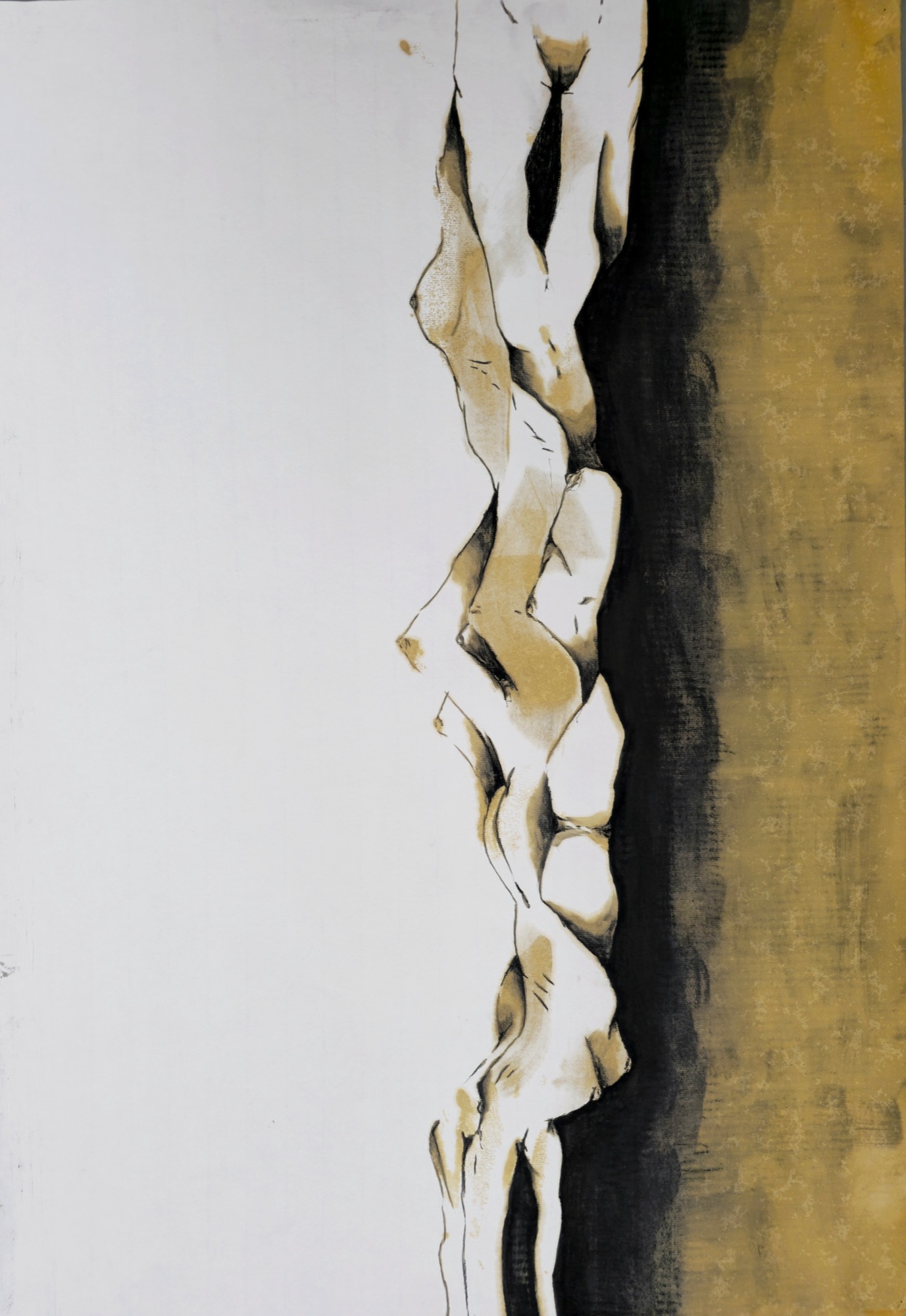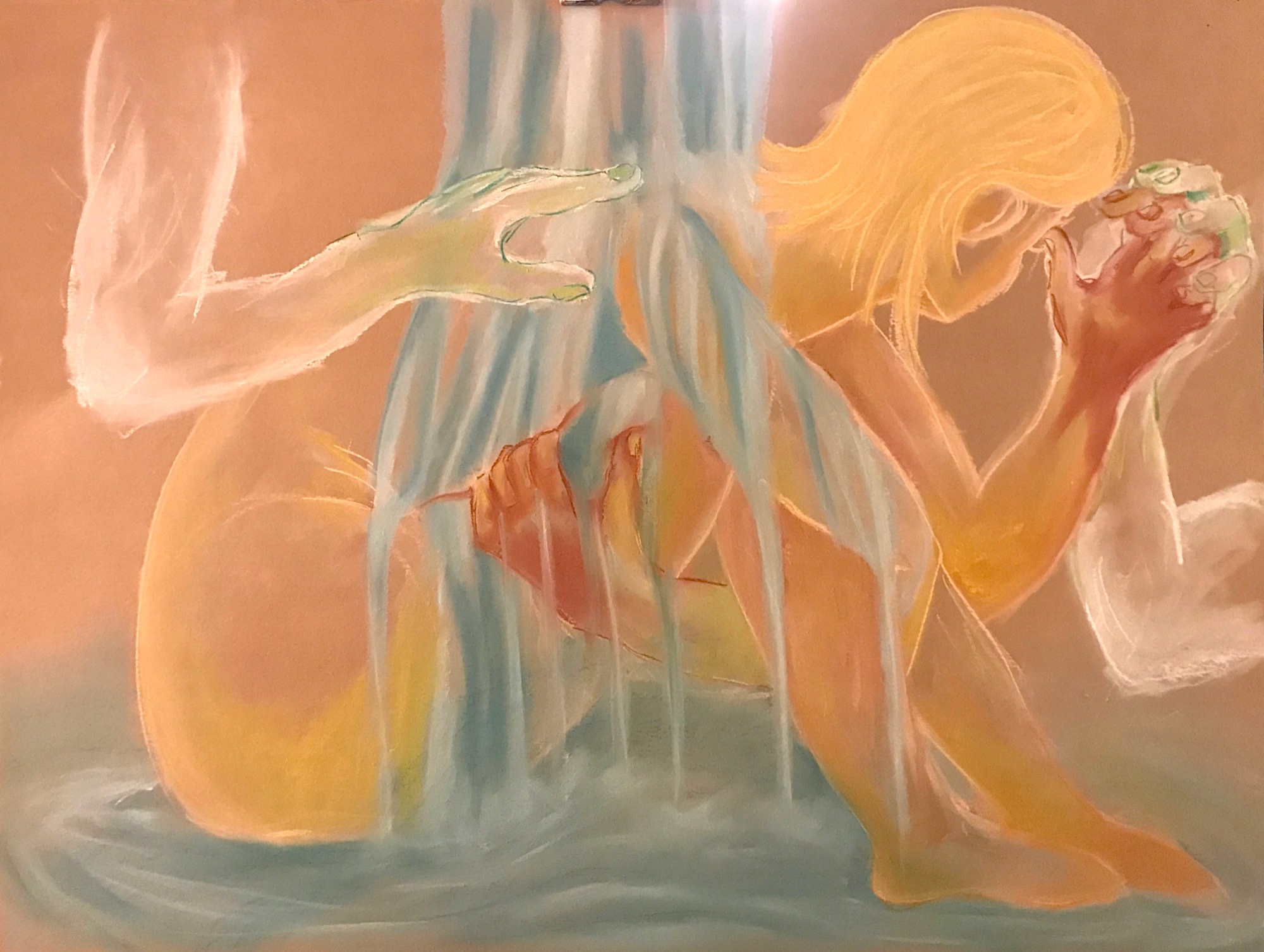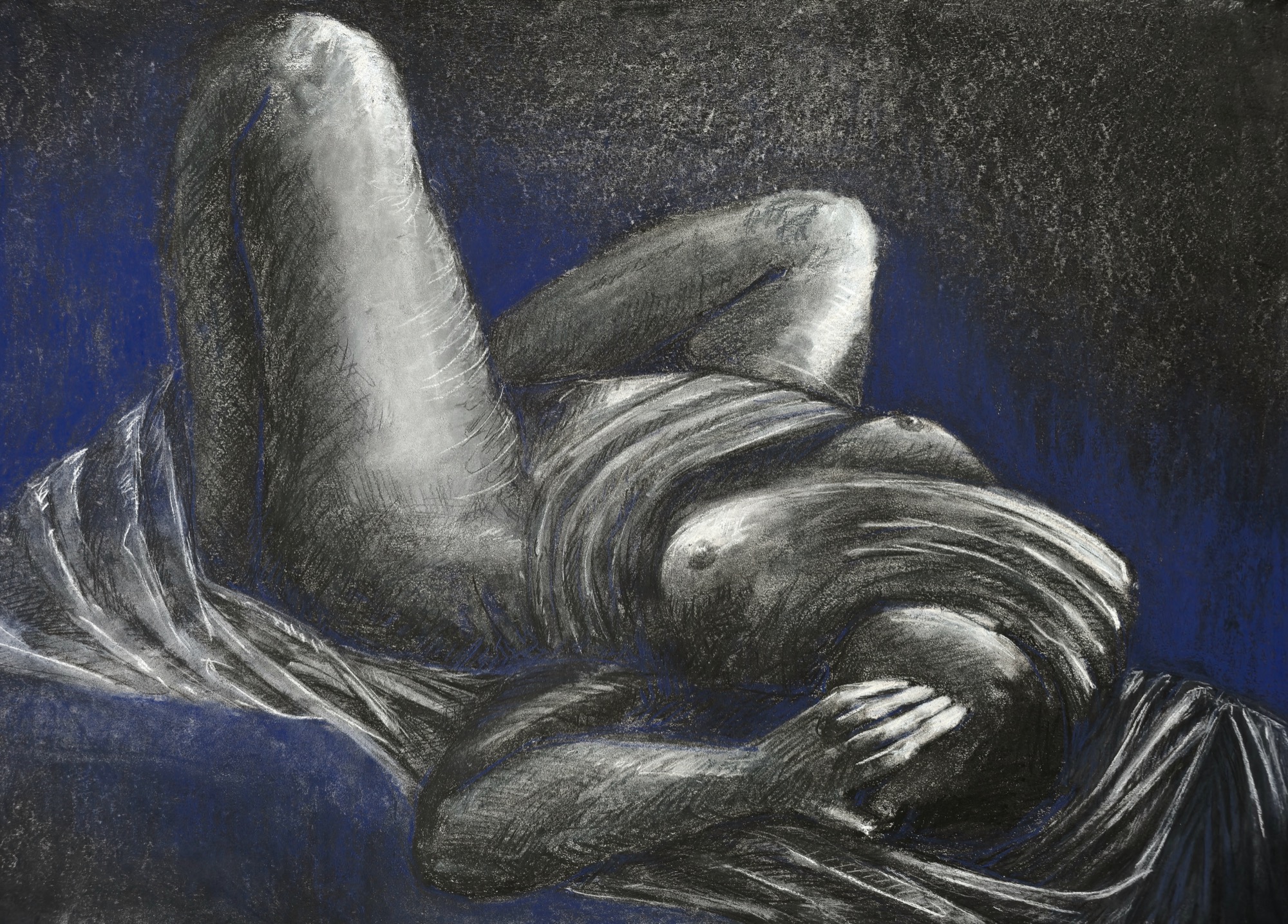 Körper sind kraftvolle Inspirationsquellen, die mich in jeder kreativen Phase begleiten. Dabei können sich die Körper verformen, miteinander verschmelzen, abstrakte Strukturen bilden oder mit Dingen, wie dem Gewand, zur Einheit werden.
